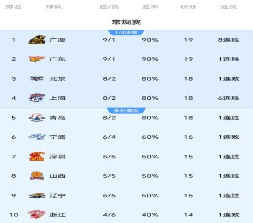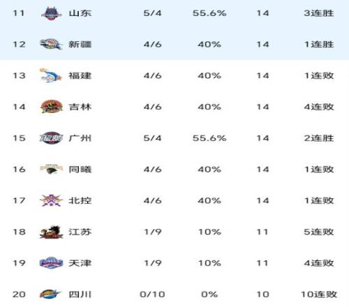 北京时间1月4日晚上,CBA常规赛第十轮继续进行,总共五场比赛,辽宁男篮大胜吉林男篮,山西男篮大胜江苏男篮,天津男篮不敌广州男篮,福建男篮输给新疆男篮,山东男篮逆转同曦男篮。