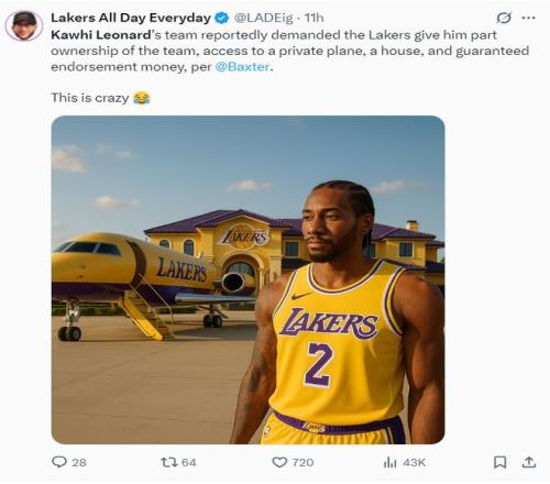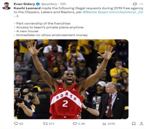 伦纳德阴阳合同事件实际上只是场外流言的冰山一角,更多的细节能看出他是一个急功近利的球员,比如小卡的叔叔丹尼斯曾要求湖人给他:球队部分股权、私人飞机使用权、一栋房屋以及保障性的场外代言收入。这些要求他同样向湖人、猛龙等球队提出过。