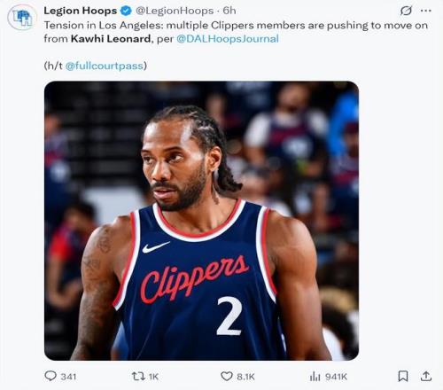 NBA记者Baxter则表示,多位联盟的高管与其他职业体育联盟的经理人都觉得科怀-伦纳德会跟快船执行完合同,他的合同在26-27赛季结束后到期。
