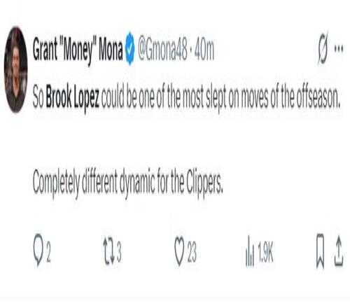 美记GMM写道:大洛在快船的情况跟上赛季完全不同,所以他是休赛期最被低估的引援之一。