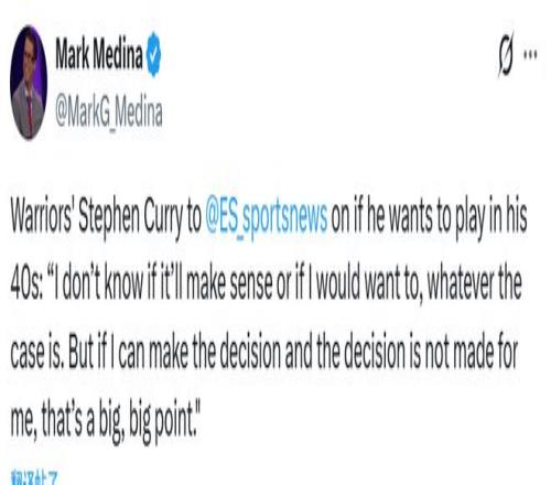 “我只能说,我希望自己能有选择权,而且前提是我的能力确实还能支撑我继续打球,”库里说道,“我不确定(打到40岁)是否合理,也不确定自己届时是否还想打,各种情况都有可能。但如果我能自己做决定,而不是被迫接受别人替我做的决定,这一点对我来说非常重要。”