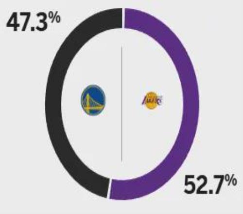赛前,ESPN对本场比赛进行了预测:缺少了詹姆斯的湖人仍是更被看好的一方,胜率52.7%,而勇士为47.3%。