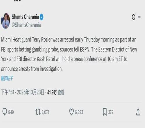 北京时间10月23日晚,据NBA名记Shams报道,热火后卫罗齐尔因参与体育博彩赌博,今天被FBI(美国联邦调查局)正式逮捕!上一个参与赌博的NBA球员是琼泰-波特,已经被NBA终身禁赛,罗齐尔也将面临同样的处罚结果。
