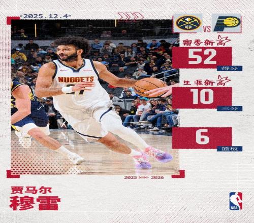 此战过后,穆雷掘金生涯第三次单场斩获50+,升至掘金队史第二,仅次尼古拉-约基奇(4次)。