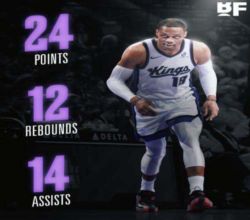 国王队官方也晒出推文祝贺拉塞尔-威斯布鲁克完成自己新的生涯里程碑。