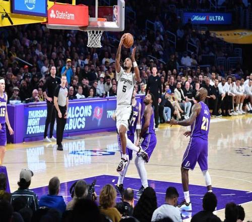 第三节和第四节,马刺都曾将分差拉开到20分以上,但湖人并不会轻易缴械投降,东契奇的硬接能力是湖人的大杀器(全场比赛他砍下35分),而伤愈复出的斯玛特更是在两节比赛命中7记三分全场砍下26分,甚至一度让湖人看到了翻盘的希望,可最终湖人还是败给了马刺的“年轻风暴”。