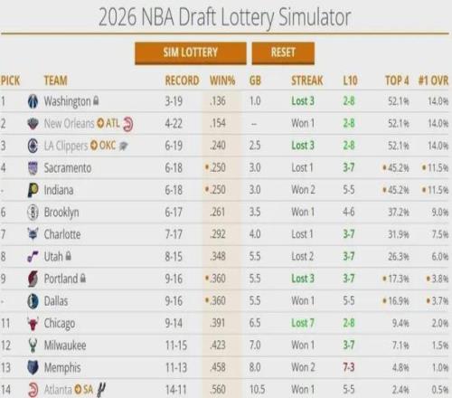 本场比赛过后,快船以6胜19负西部倒数第二&联盟倒数第三,好消息是明年的状元签概率来到并列最高的14%,以及首轮签前四概率提升至52.1%,坏消息是这个选秀权在目前以24胜1负傲视群雄的雷霆手里......