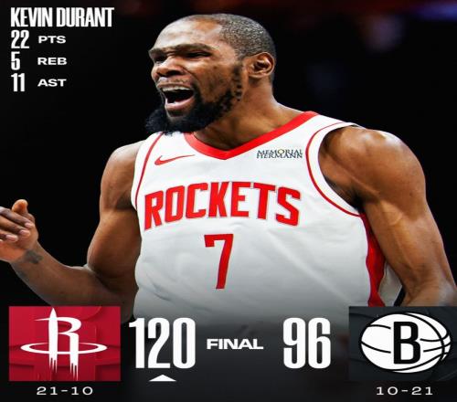 北京时间1月2日,火箭120-96大胜篮网拿到四连胜,火箭稳住了他们西部上半区的席位,火箭距离西部第三的掘金只剩下1个胜场,而且掘金的替补中锋瓦兰也伤了,火箭重返西部第三似乎已经是板上钉钉,杜兰特的竞技状态一如既往的稳定。
