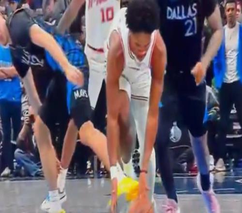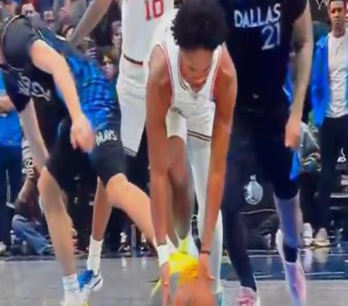 在比赛刚刚开始的时候,独行侠队由弗拉格控球,结果造到对位防守的阿门-汤普森面断,当阿门拿球准备快攻时,弗拉格伸脚绊倒了阿门,被吹罚犯规。