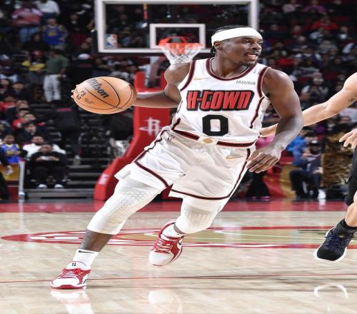 举个例子,当年火箭队还在疯狂摆烂的时候,也就是在2021年1月15号,火箭队那天以109:105战胜了圣安东尼奥马刺队。那场比赛,泰特首发出战,他在33分钟里12投6中,全场砍下了13分、5篮板,并且送出了全队最高的10次助攻,还有2个盖帽。而那场比赛,泰特也成为了火箭队自弗朗西斯之后,第一位在单场比赛里砍下至少10分、10助攻的新秀球员。