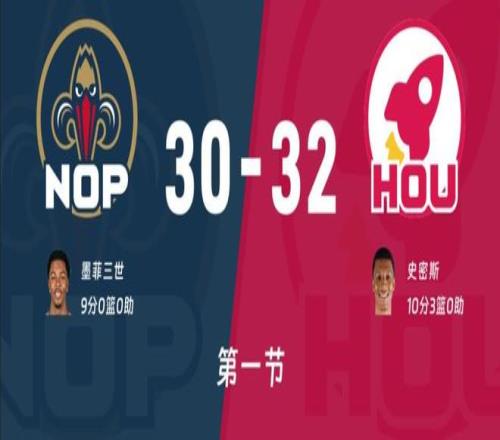 比赛开始火箭主场第一攻,墨菲对位杜兰特,奎因对申京,锡安对位亚当斯。杜兰特第一攻没有,奎因内线被封盖阿门前场一条龙上篮,奎因干拔中距离也有双方2-2开局,鹈鹕连续进攻不成,史密斯三分,亚当斯前场篮板补篮,申京跳投一波7-0将比分变成9-4,墨菲半截篮帮助鹈鹕打破得分荒,杜兰特过来跳投被犯规两罚一中,杜兰特这两场比赛罚球很差。史密斯内线上篮打成,锡安中距离回应,杜兰特三分开火分差来到9分,锡安空切上篮被亚当斯封盖,回过来杜兰特中距离干拔再中17-6鹈鹕暂停。回到比赛奎因内线上篮帮助鹈鹕追分,阿门空切暴扣,双方投篮命中率都很低,米西补篮隔扣亚当斯,史密斯突然爆发连投带罚一人打了一波5-0,米西联手贝两次篮下得手帮助鹈鹕艰难追分17-26,霍金森3+1后鹈鹕打了一波6-0分差来到3分,一波对攻后火箭32-30领先2分结束首节!