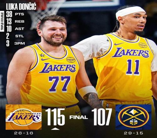 东契奇38分三双穆雷28+11 湖人逆转掘金