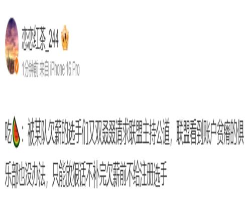 某r姓俱乐部爆料人:某队欠薪被联盟要求不补完欠薪前不给注册选手