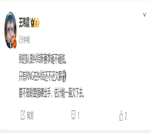 媒体人-王玮晨在个人微博透露RNG相关内容: