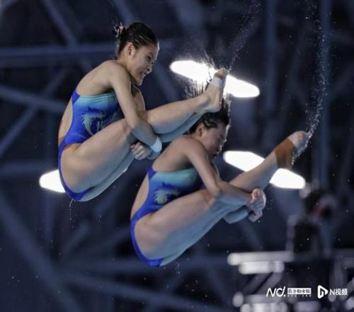 全红婵/王伟莹在比赛中。