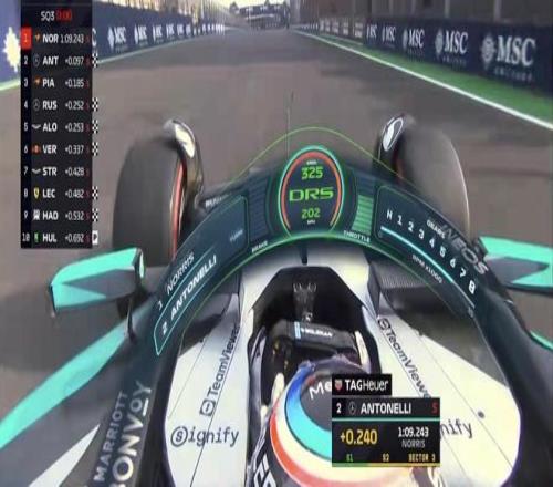 维斯塔潘冲线后来到第6,两台梅赛德斯排在第2&第4,安东内利排在拉塞尔身前;