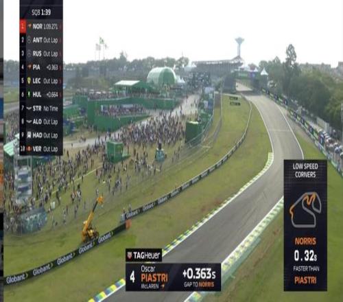 5位车手选择在P房里等最后一圈飞驰,目前出场的5位车手中诺里斯暂居榜首,身后的则是两台梅赛德斯;