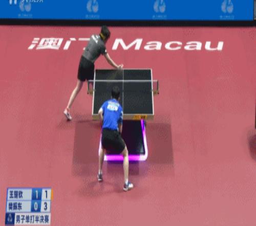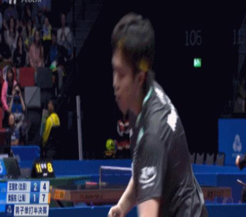 后面被王楚钦连续两个倒地爆冲(上台一个被防回去一个)之后,樊振东变了一个长球,又被王楚钦直接侧身得分。
