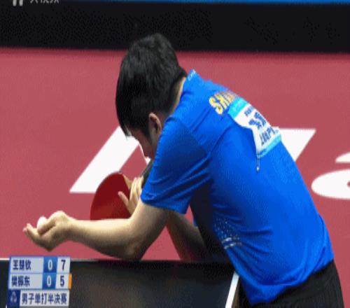 到了这会,双方的精力体力消耗开始肉眼可见了。王楚钦的发球威胁仍然在线,上来两个发球都迫使樊振东直接失误。而樊振东在这种消耗战中的优势是他成吨的厚度。