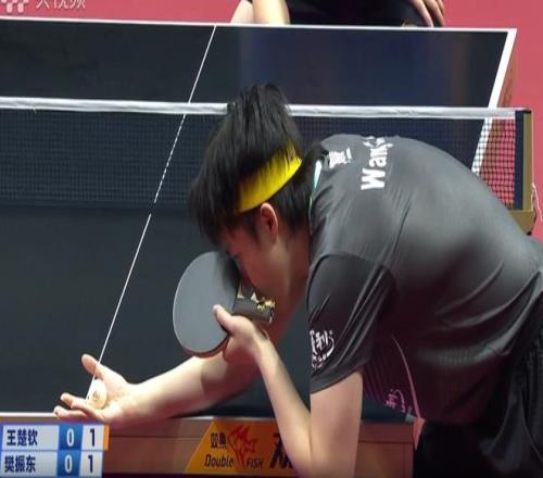 7-9的时候,针对王楚钦的台角保护半出台,樊振东直接给了直线。