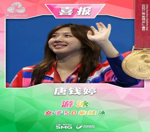 在此前的预赛和半决赛中,唐钱婷均以第一名的成绩晋级。决赛中,唐钱婷从第四泳道出发。凭借着强势的表现,最终,唐钱婷以30秒00摘得金牌,拿下个人在本届全运会的第二金。