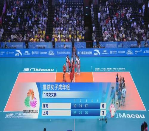 全运会排球项目女子成年组1/4交叉赛,第二场河南女排vs上海女排。三局较量中,上海队凭借默契团队配合与稳定竞技状态占据上风,以25-19、25-19、25-17,连下三局,3-0完胜朱婷领衔的河南队,成功锁定四强席位。