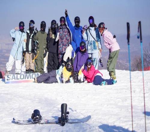 11月22日,滑雪爱好者在吉林市中旅松花湖度假区合影留念。 新华社记者 颜麟蕴 摄