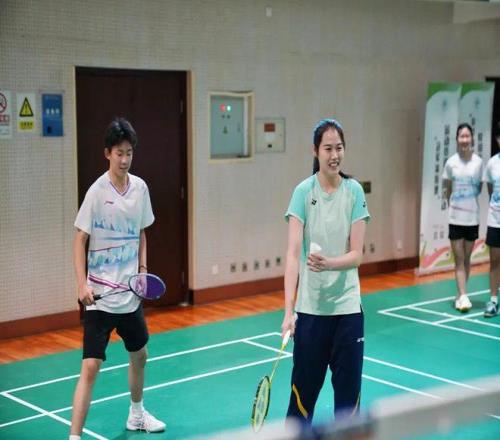 冠军体育课在羽毛球馆展开。“郑老师好。”随着校羽毛球队队员们的问好,郑老师带领大家进行热身,随后拿起球拍为队员们进行示范,“不要害怕失误,把动作做完整。”在简单的讲解过后,郑雨与高二学生刘思辰搭档,进行了一场混双表演赛。“郑老师的出球更隐蔽,发力也更集中,还有很多细节值得我学习。”刘思辰为搭档郑雨老师竖起了大拇指。高一年级学生刘浩然认为,与郑雨老师同台打球自己受益良多:“打球要多动脑,打完一个球要想对方会怎样回,就像郑雨老师一样,去预判对方的球路,这样才能更好得去抓住机会。”谈及与郑雨进行混双对决的感悟,刘浩然坚定地说:“球不落地,永不放弃。”