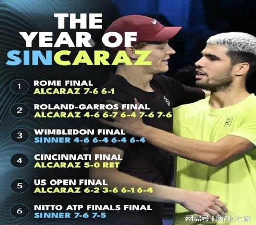 其五、今年都灵ATP年终总决赛最后的决赛,辛纳两盘见七(7:6 7:5)战胜阿尔卡拉斯,卫冕成功,于是风向突然为之一变,扬辛抑阿之言,一时此起彼伏。