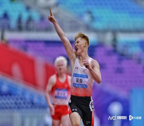 男子200米T13级决赛,云南运动员吴俊获金牌,冲线一刻。