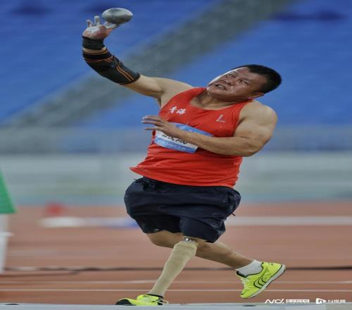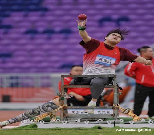 男子铅球F57级决赛,广西运动员蓝竟达。