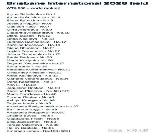 两相比较,占据地理优势的布里斯班的参赛阵容要更为豪华一些。在这站男女单都有的赛事中,女单由卫冕冠军萨巴伦卡领衔。此外,还有阿尼西莫娃、莱巴金娜、佩古拉、凯斯、安德列娃、亚历山大洛娃六位TOP10选手,届时三届赛会冠军卡-普利斯科娃也将亮相。
