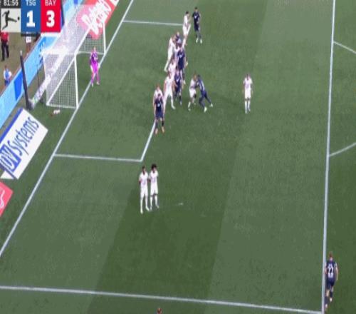 第81分钟,曹法尔主罚前场左侧任意球,基米希解围失误,球飞入球门,3比1!