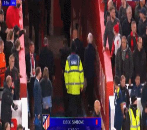 他与身边开心庆祝的利物浦球迷,发生激烈的言语冲突,在被嘲讽后,情绪激动的他甚至竖中指挑衅。尽管阿根廷名帅还试图继续与利物浦球迷争吵,但被工作人员死死拉住,最终西蒙尼被主裁出示红牌提前罚出场。