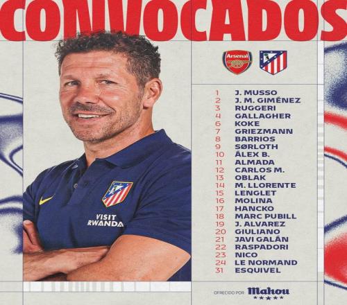 马竞欧冠vs阿森纳大名单: