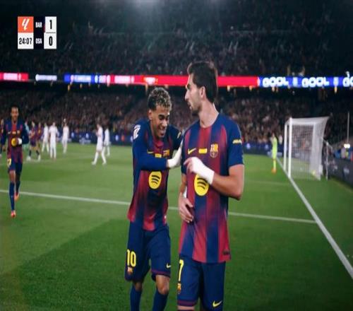 超七成的控球率,促使巴萨全面围攻奥萨苏纳的禁区,但是面对密集的防守,屡次进攻接连被挡出。第40分钟,亚马尔晃开三人的防守,将球送入禁区,面对大好的机会,费兰托雷斯倒钩遗憾偏出球门。半场比赛结束,两队都没有取得进球。