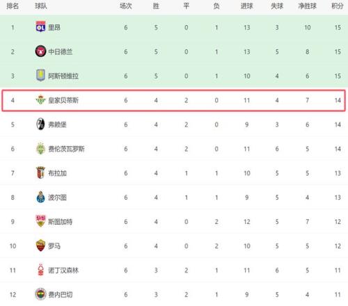 在安东尼的带领下,贝蒂斯如今在欧联杯排名第四,他们牢牢掌握了主动权,只要最后2场比赛对阵塞萨洛尼基和费耶诺德,贝蒂斯能够全取6分,就肯定能直接晋级淘汰赛。从目前的状态和绝对实力来看,贝蒂斯出线理应不存在问题。事实上,他们本赛季的目标,是冲击欧联杯冠军。如今贝蒂斯兵强马壮,他们有足够的实力与里昂和维拉等强队争冠。