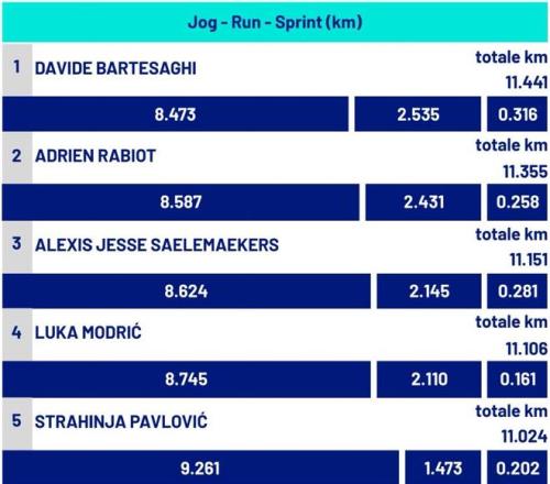 继德比战跑出11.45公里后,本场对阵蓝鹰巴尔泰萨吉再度跑出了11.44公里的队内最长距离,奔跑时的平均速度达到19.7 km/h,仅次于莱奥排名第2。