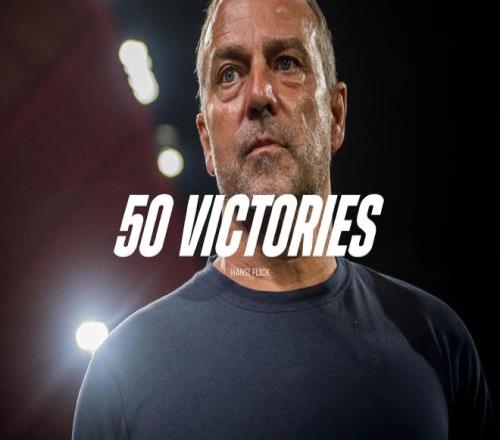 赛后,巴萨官方社媒晒出海报,庆祝主帅弗里克执教红蓝军团的第50场胜利。
