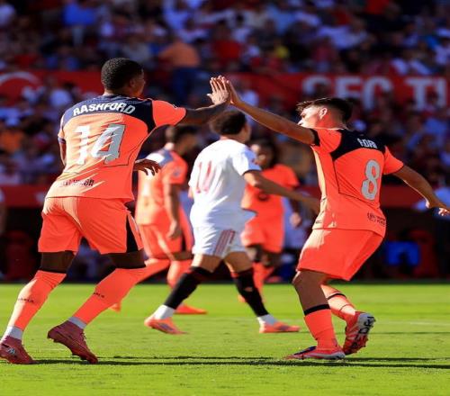 作为6届欧联杯冠军得主,塞维利亚因为财政原因,实力已经大打折扣,这几年都已经退居到了西甲中下游阶段。此战费兰-托雷斯、莱万和拉什福德组成前场进攻线;中场三人组是佩德里、奥尔莫与德容;赫拉德-马丁、阿劳霍、库巴西、孔德联袂后防线,什琴斯尼镇守球门。