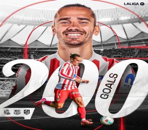 西甲第11轮,马竞3比比0塞维利亚,格列兹曼打入马竞第3球,完成了其职业生涯西甲第200球里程碑。