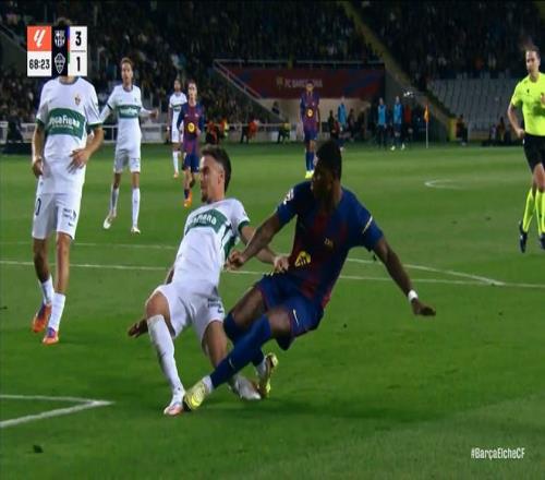 短时间连续丢球,给埃尔切的打击非常大,球队在随后的几分钟里,攻守两端出现了多次失误,尤其是防守端,动作相对较大。而巴塞罗那继续保持高昂的进攻斗志,两个边路亚马尔和拉什福德频频冲到对手的禁区腹地。