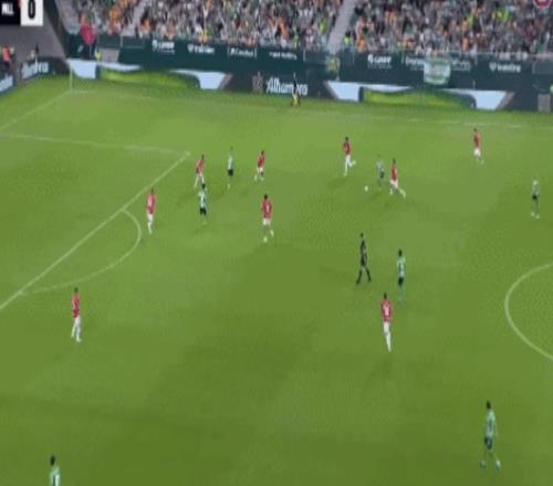 比赛第10分钟,贝蒂斯前场打出二过一配合,安东尼与库乔·埃尔南德斯背靠背撞墙,面对马洛卡5人包夹,他从23米外毫无征兆提起左脚轰出一记远射破门,左脚将右边锋的成名绝持再次上演世界波,贝蒂斯1-0领先。