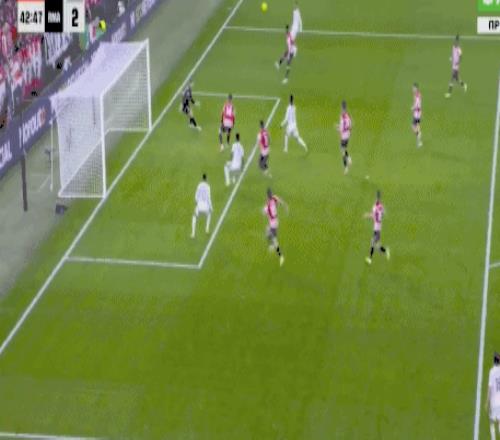 第59分钟,卡雷拉斯左路回敲,姆巴佩突施冷箭,打了乌奈-西蒙一个措手不及,皮球急速下坠钻入左下角,皇家马德里再进一球,3-0!