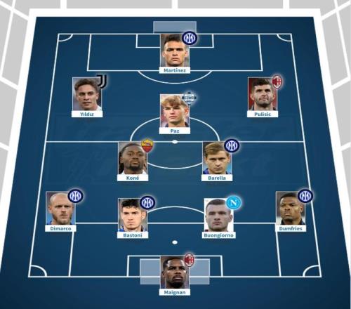 德转更新后意甲最贵11人阵容: