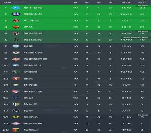 北京时间11月3日,意甲第10轮结束了8场比赛,最新积分榜如下!