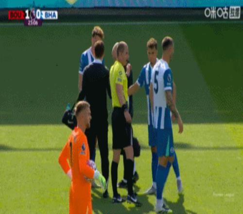 第31分钟,布鲁克斯放铲明特同样吃到黄牌。↓