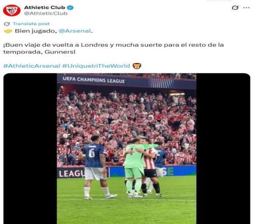 赛后毕巴官推发文:非常精彩的表现@阿森纳。祝枪手们顺利返回伦敦,本赛季剩余赛事好运!
