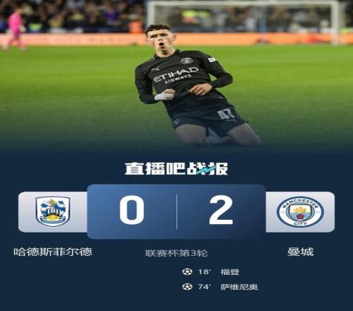 直播吧09月25日宣 联赛杯第三轮,曼城2-0客胜英甲球队哈德斯菲尔德,福登传射建功,本赛季至今5场2球2助。