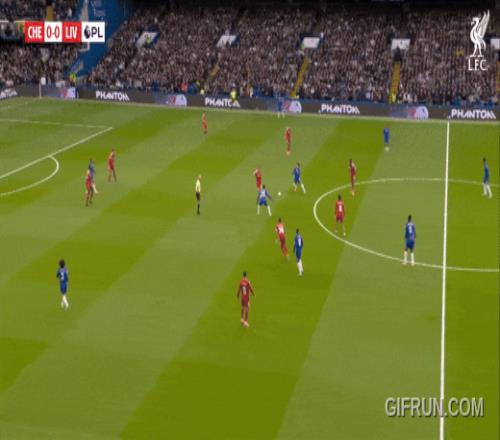 切尔西第一球,就是格拉文贝赫防恩佐,照顾切尔西左路,利物浦中路索博一对二,凯塞多前插进球。